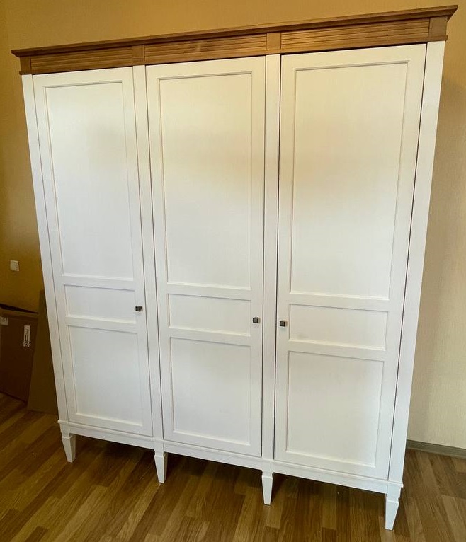 В Доме мебели из сосны заказала шкаф Бостон 1М (производство Беларусь). Покупала шкаф вслепую: к сожалению, он не выставлен в магазинах, поэтому спасибо консультанту Елене Бордецкой за помощь в просчете внутренних размеров шкафа по аналогам. После её консультации, сомнений в правильности выбора не было. Доставку осуществили быстро - менее 2 недель. Огромное спасибо за сборку Андрею и Сергею, которые в стесненных условиях (2 кв.м) собрали шкаф оперативно и качественно. Сам шкаф - полный восторг... красивый, функциональный, конструктивно продуманный и приятно пахнет сосной. Для тех, кого интересуют внутренние размеры шкафа Бостон 1М длиной 1,57м: глубина полок - 39 см, ширина полок левой и правой секций - 43 см, но надо учесть боковые планки со створками шириной 5,5 см, ширина центральной части - 56 см. Елене, Андрею и Сергею огромное спасибо за проделанную работу. Все очень понравилось, рекомендую!!!