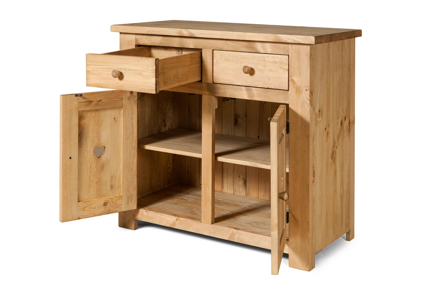 Корпус, ящики, полка и дверцы изготовлены из массива сосны.