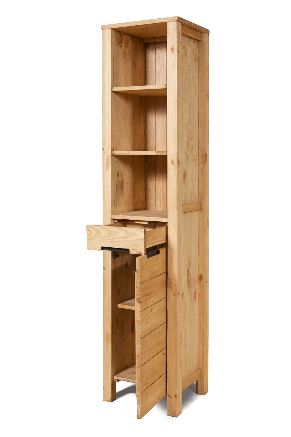 Корпус, полки и дверцы изготовлены из массива сосны.