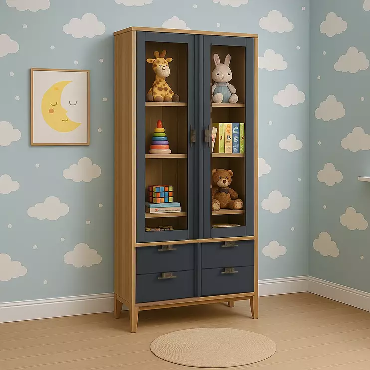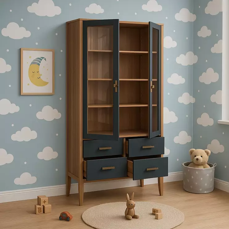 Мебель для детской «Бридж» предлагается в трех цветовых вариантах: коричневый, коричневый/белый и коричневый/серый. Донья ящиков белого цвета, стенки ящиков окрашены в цвет фасада. Окрашивание осуществляется вальцовым методом, покрытие отверждается ультрафиолетом. Поверхность получается абсолютно ровной, под покрытием не видна текстура дерева.