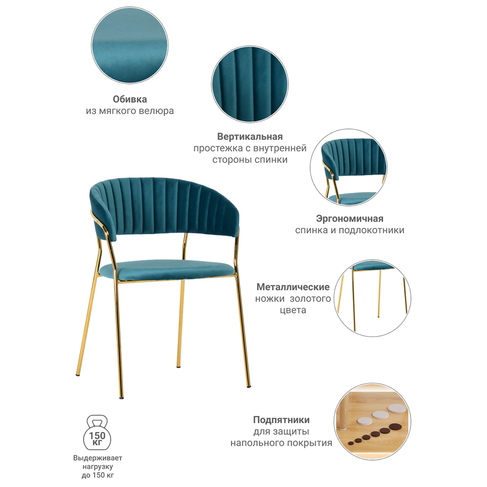 Комплект из 4-х стульев Turner бирюзовый с золотыми ножками