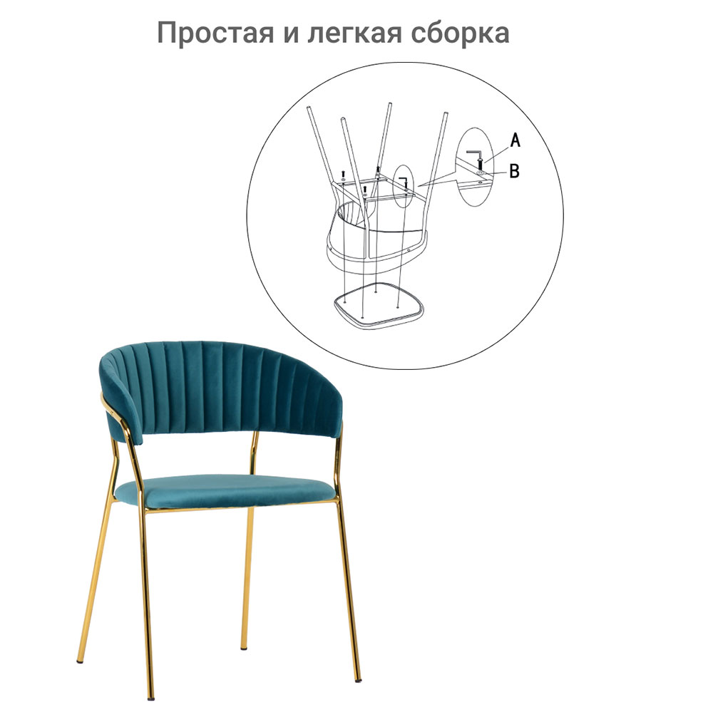 Мягкие спинка и сидение, оригинальный каркас и опоры с декоративным эффектом технологии золочения хромированных деталей.