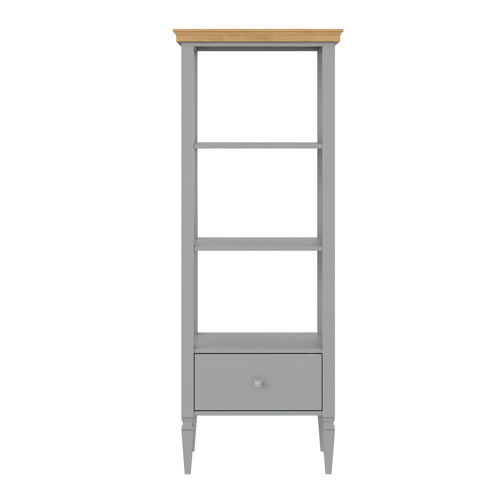 Этажерка оснащена двумя полками и одним выдвижным ящиком.