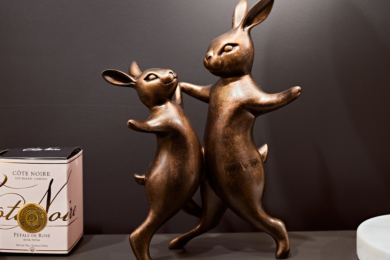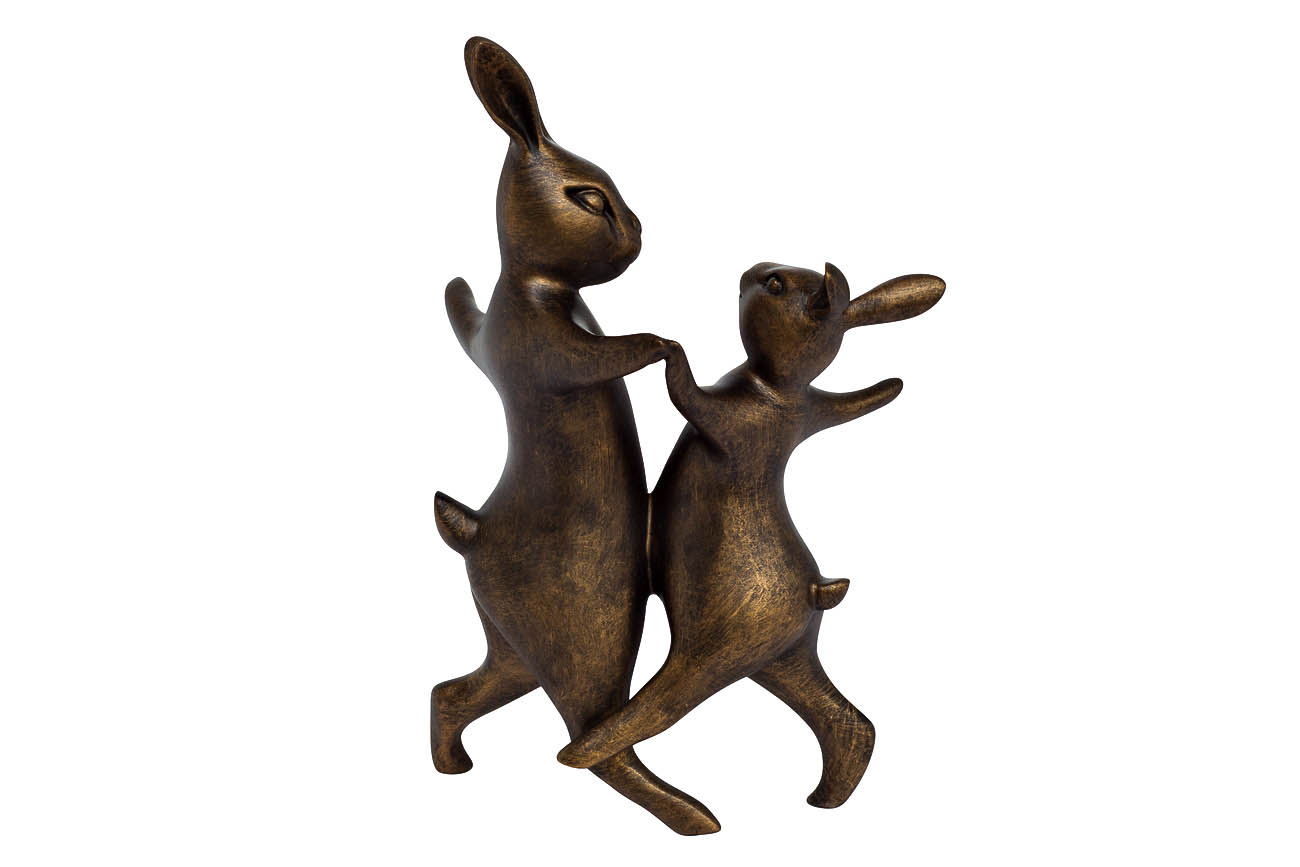 Прелестные и забавные фигурки танцующих кроликов символизируют романтический союз любящих сердец, семейное благополучие и процветание. Статуэтка из полимерной смолы цвета бронзы впишется в любой интерьер. Танцующие кролики станут прекрасным подарком возлю...