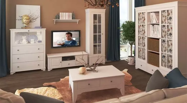 Доступно 3 варианта отделки: белый воск, белый воск плюс антрацит и белый воск плюс антик. Для отделки применяются гипоаллергенные лакокрасочные материалы с пчелиным воском от шведского бренда Becker Acroma. Под покрытием просматривается древесный рисунок.